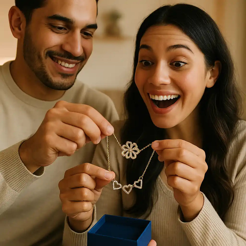 Un gesto, dos símbolos: suerte y amor en un solo collar